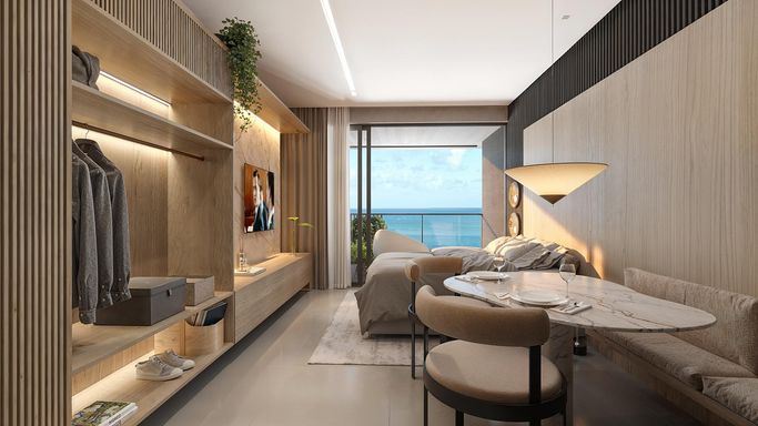 O Vert Home Corporate apresenta apartamentos cuidadosamente planejados, com metragens que variam de 35 m² a 59 m². São studios modernos e unidades com um quarto, ideais tanto para moradia quanto para investimento estratégico. Cada detalhe da distribuição dos ambientes privilegia conforto, fluidez e aproveitamento inteligente dos espaços. As unidades contam com uma vaga de garagem e o empreendimento oferece uma área de lazer completa, entregue totalmente equipada, além de recepção 24 horas, preparada para atender moradores e inquilinos com excelência e profissionalismo.